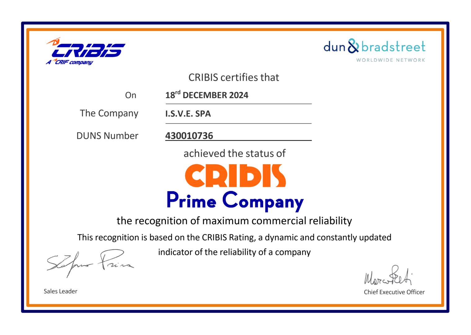 We are proud to announce that ISVE S.p.A. has received the prestigious CRIBIS Prime Company certification, a recognition that represents the highest level of economic