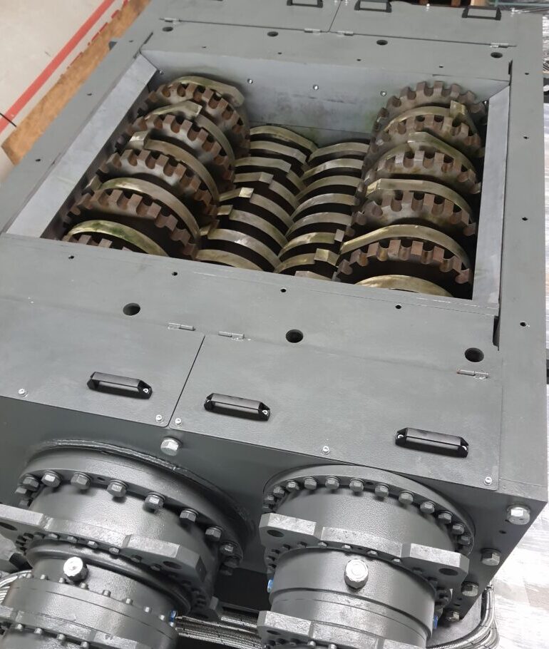 Le broyeur à 4 arbres “lourd” 100/130S-SERIE MAX est pourvue d’une chambre de découpe de 1.000×1.300 mm. En plus des couteaux, il monte deux arbres introducteurs.