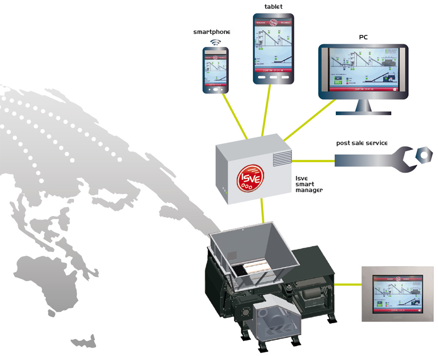 Con un modulo aggiuntivo, ciascuna macchina è predisposta per essere collegata on-line tramite la rete fissa aziendale o con scheda telefonica. Con questo sistema, il funzionamento del macinatore viene monitorato direttamente dalla casa madre. Sono inoltre possibili aggiornamenti software e la regolazione dei parametri di funzionamento in remoto.