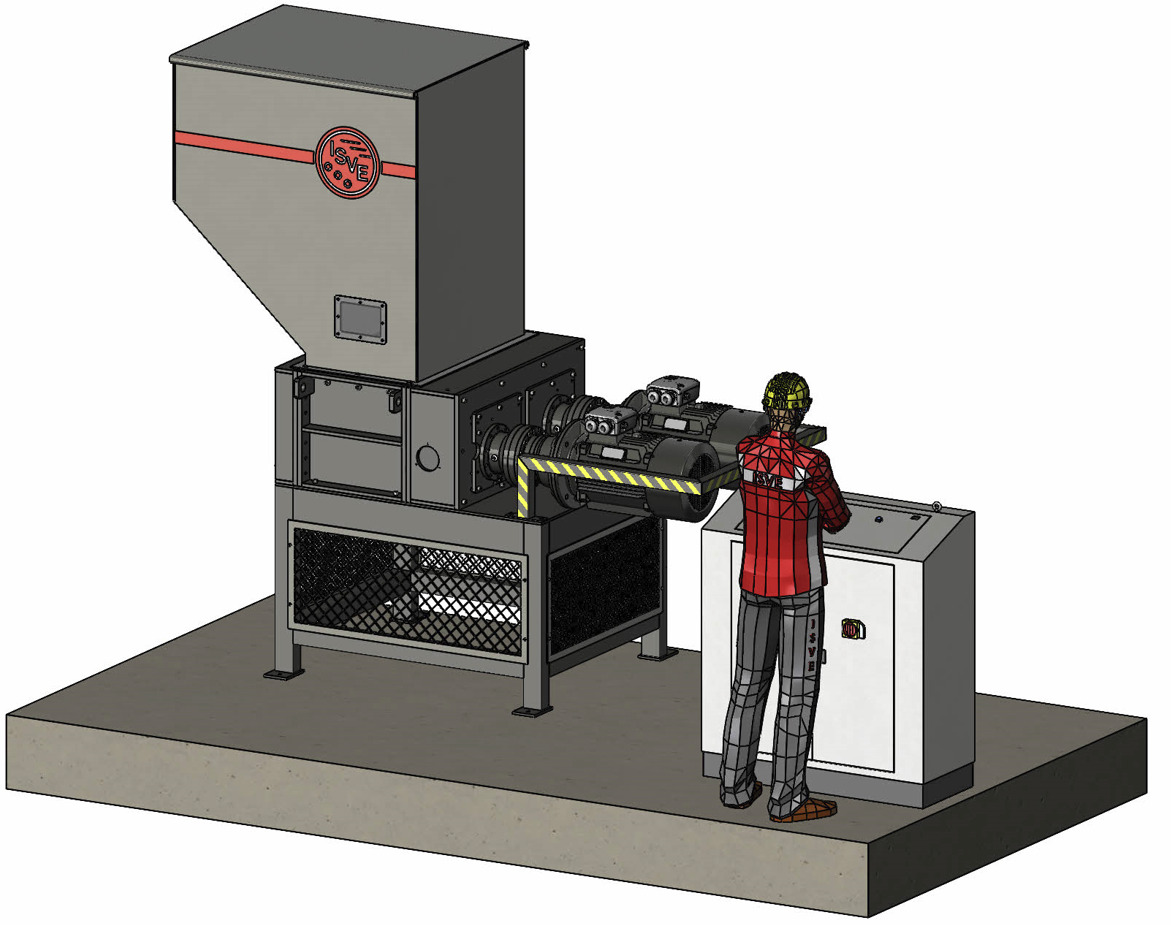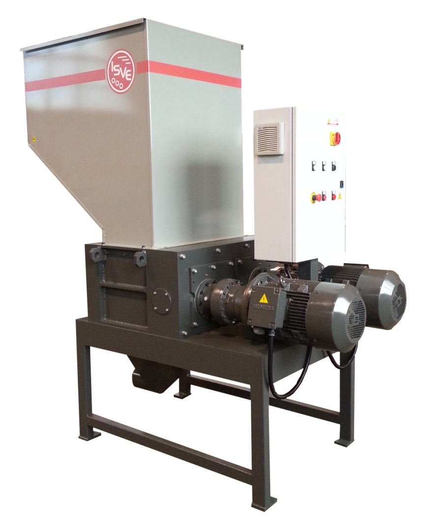 Macchina di medie dimensioni molto polivalente, adatta per la triturazione di materiali di scarto voluminosi. Può essere inserita in linea per il funzionamento in continuo.