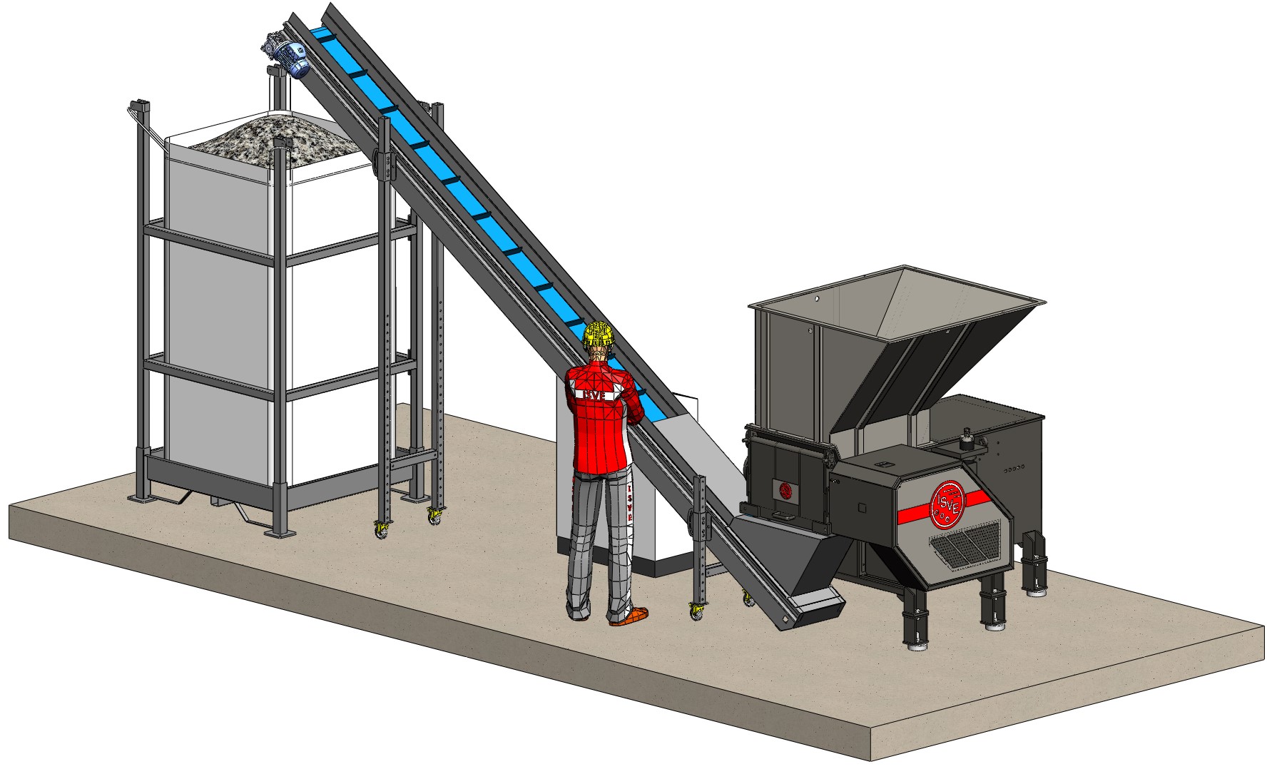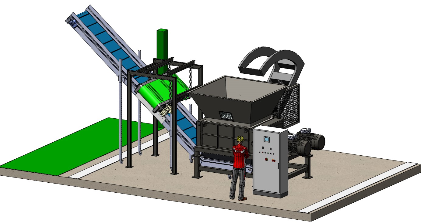 Questo è il progetto che abbiamo creato su misura per un nostro cliente ungherese che necessitava di triturare materiale IBC con gabbia metallica. Questo particolare
